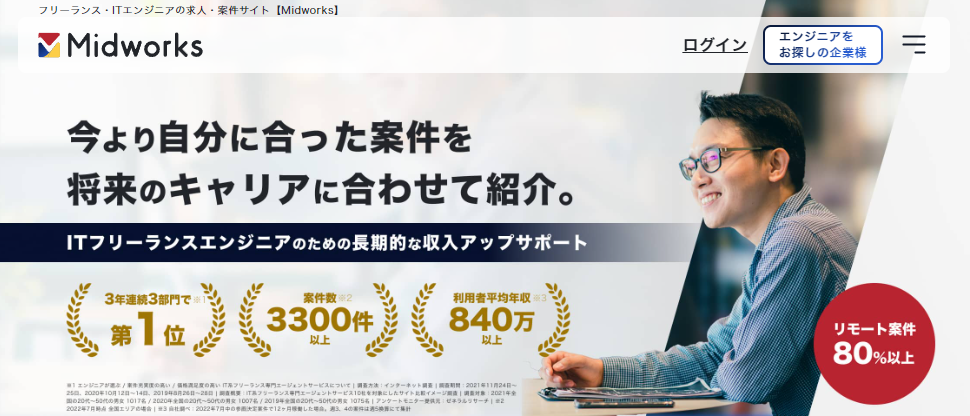Midworksは、フリーランスエンジニアのためのプラットフォームで、様々なサポートや特典を受けることができます。